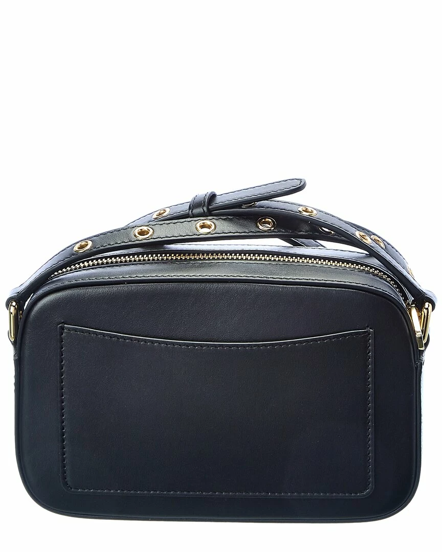 - 3.5 Leather Crossbody in black leather and gold-tone hardware with logo accent and exterior pocket