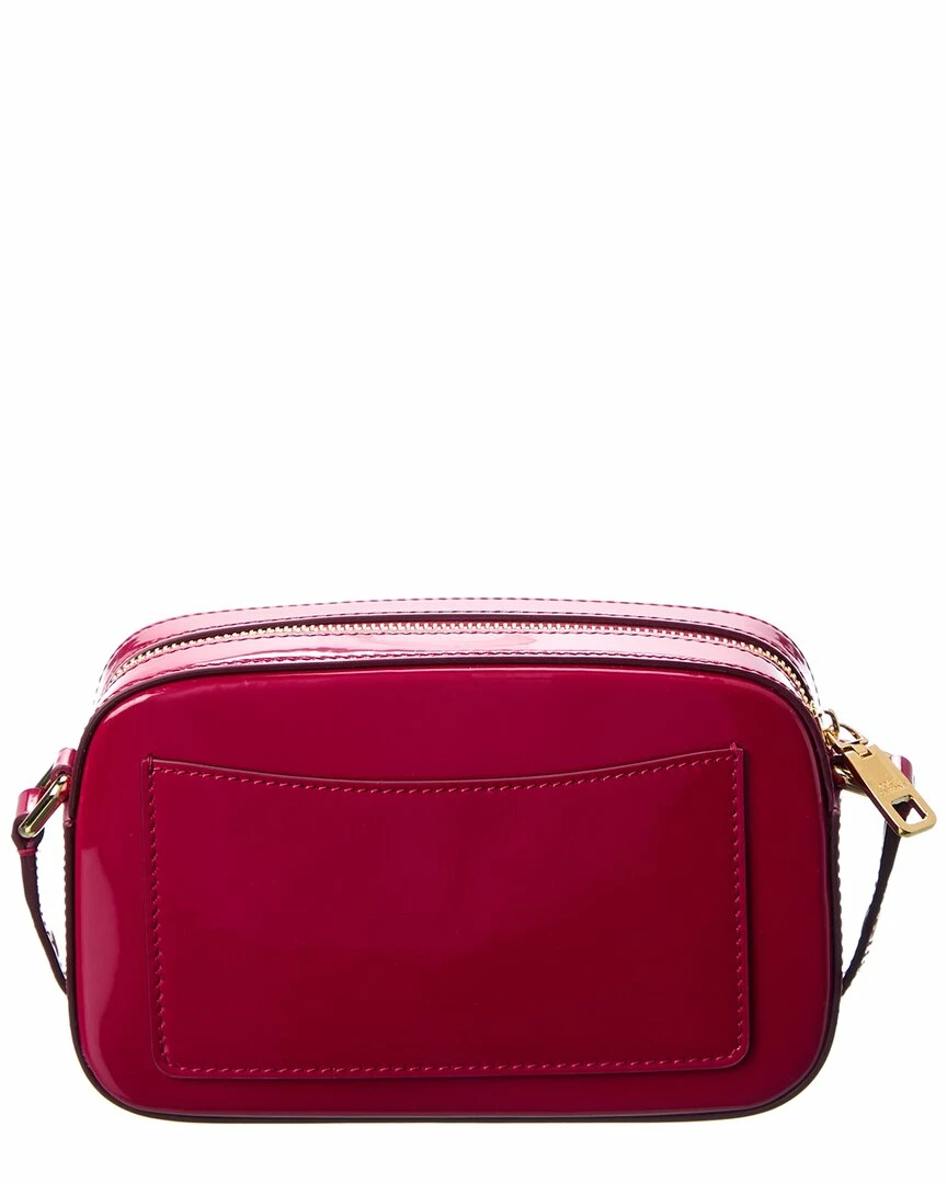 - 3.5 Leather Crossbody in pink patent leather and gold-tone hardware with logo accent and exterior pocket