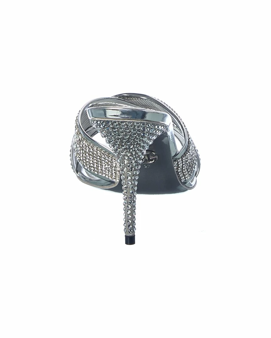 - Crystal Mesh Sandal in silver crystal mesh with crossover straps