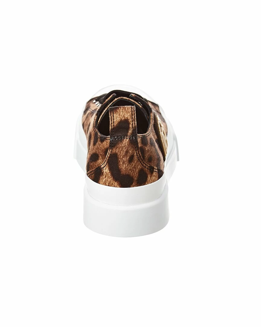 - DG Drill Portofino Canvas Sneaker in leopard printed canvas and silver-tone hardware with logo patch
