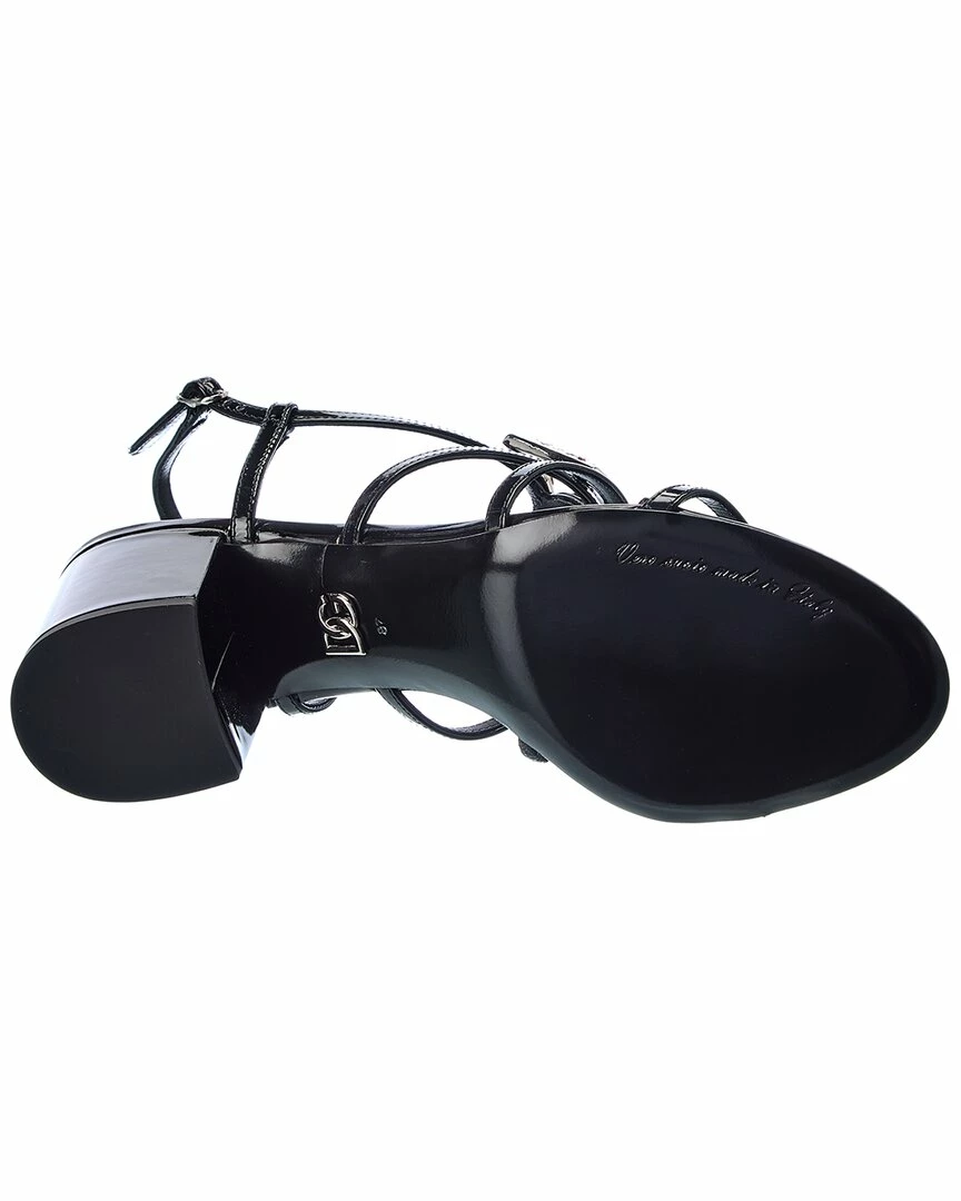 - DG Leather Sandal in black leather and silver-tone hardware with crystal-embellished logo