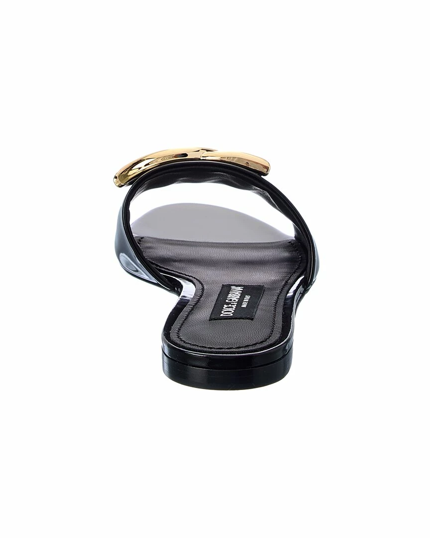 - DG Logo Leather Sandal in black leather and gold-tone hardware with logo accent