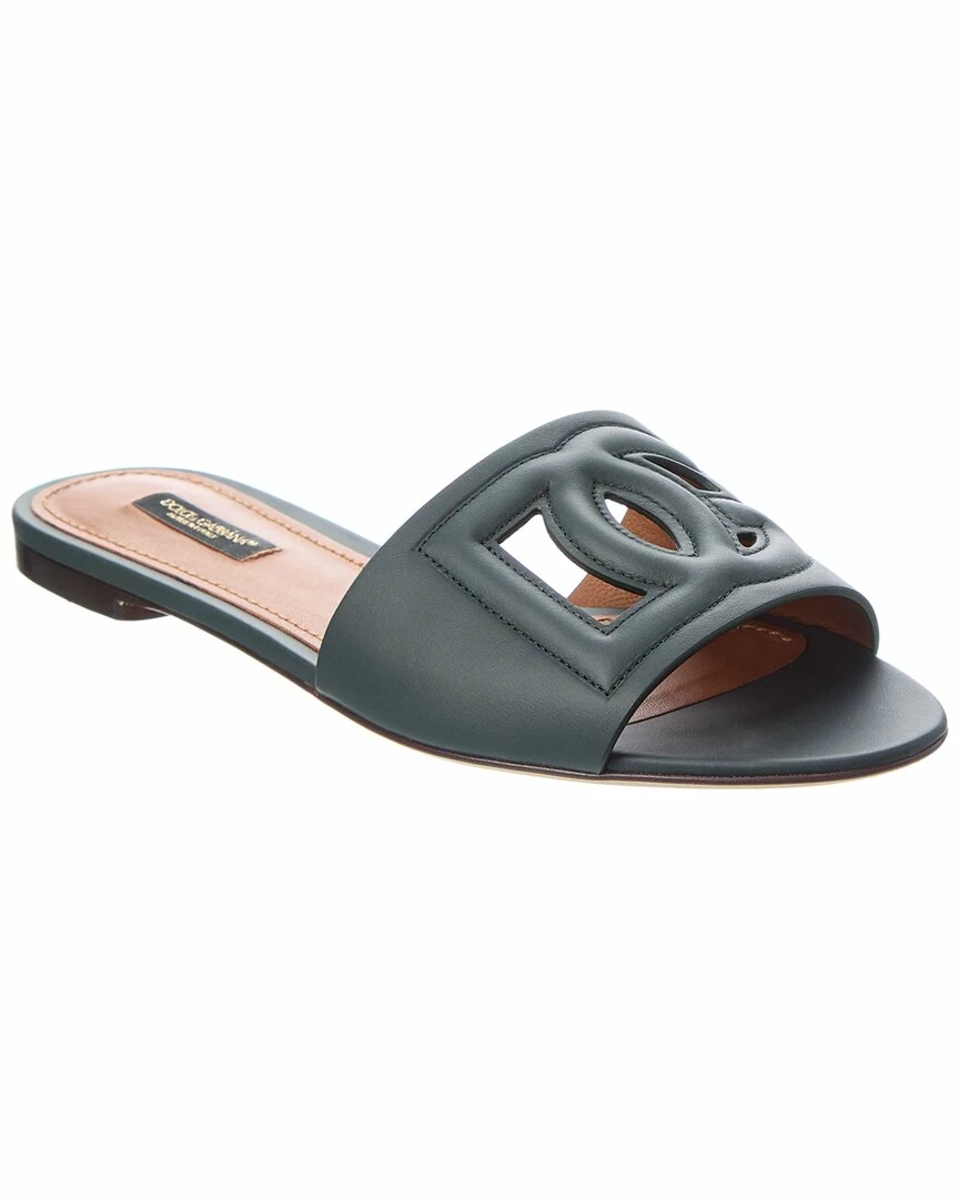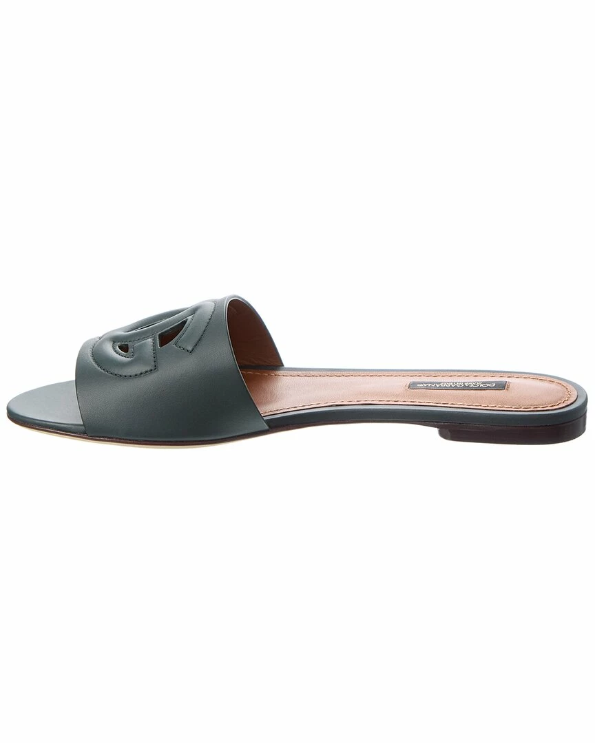 - DG Logo Leather Sandal in green leather with cutout logo