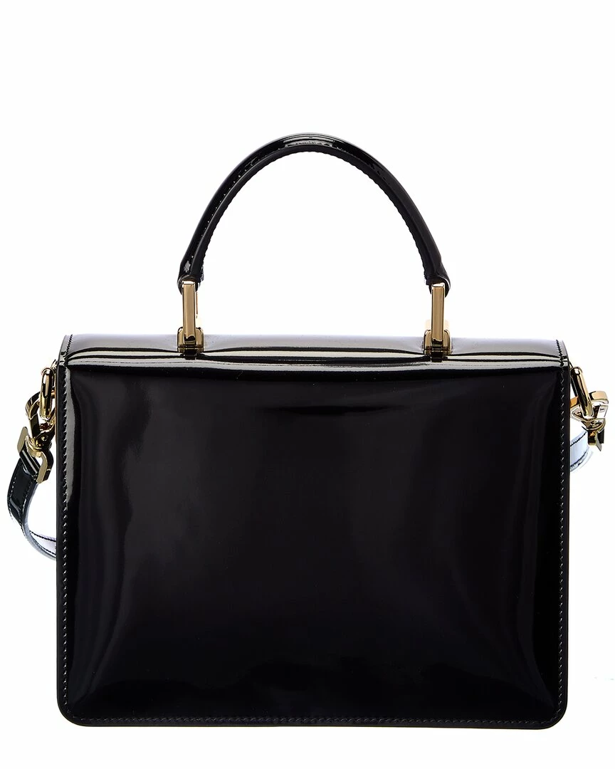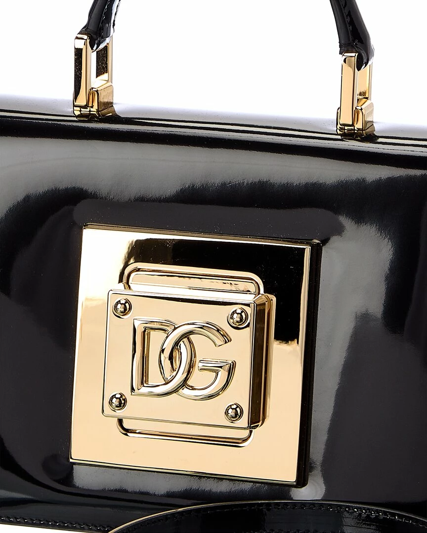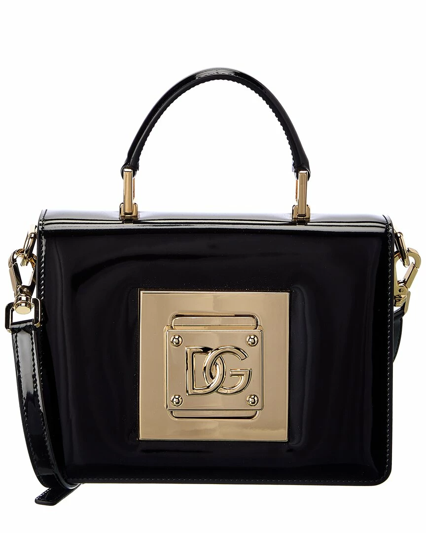 - DG Logo Leather Shoulder bag in black polished leather and gold-tone hardware with logo plaque