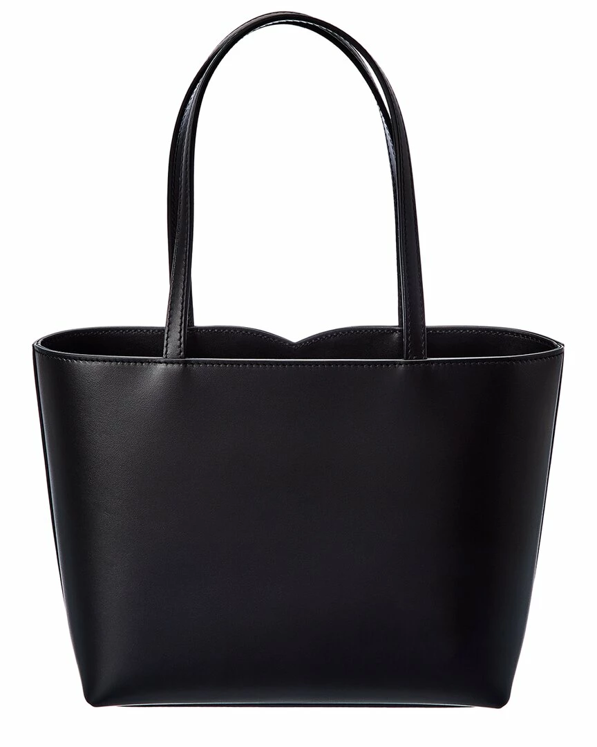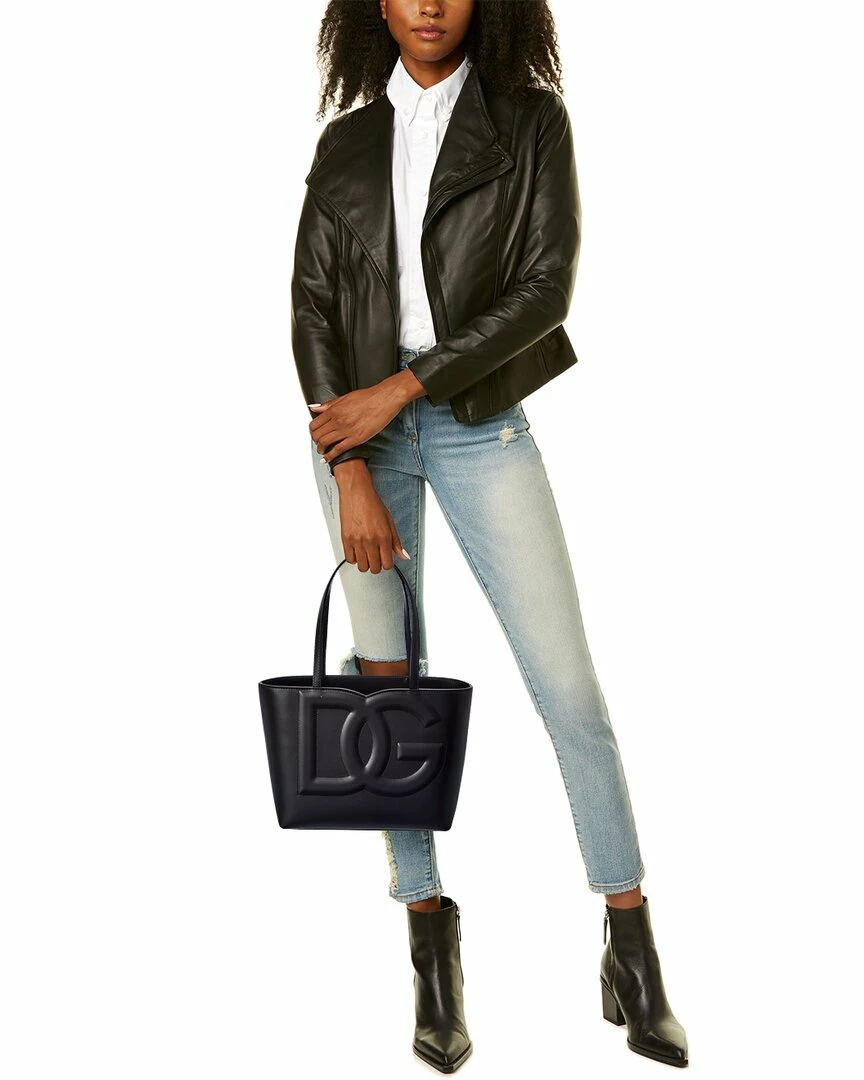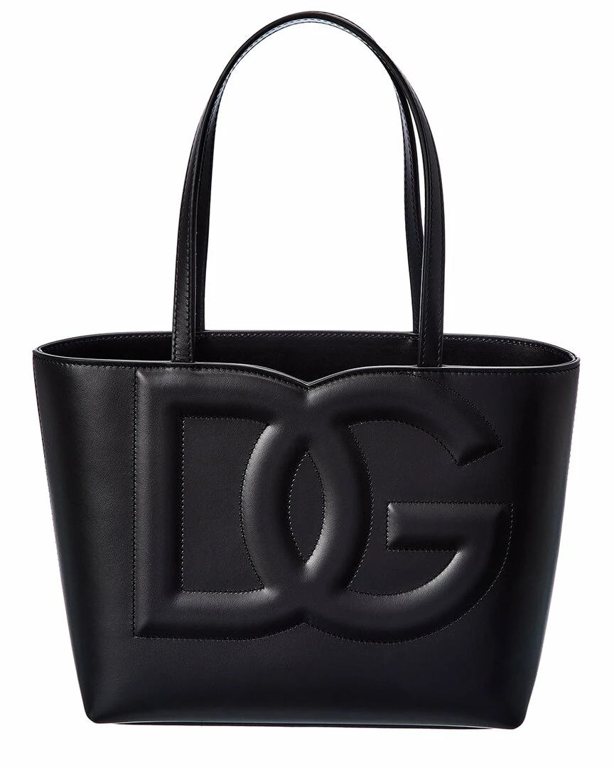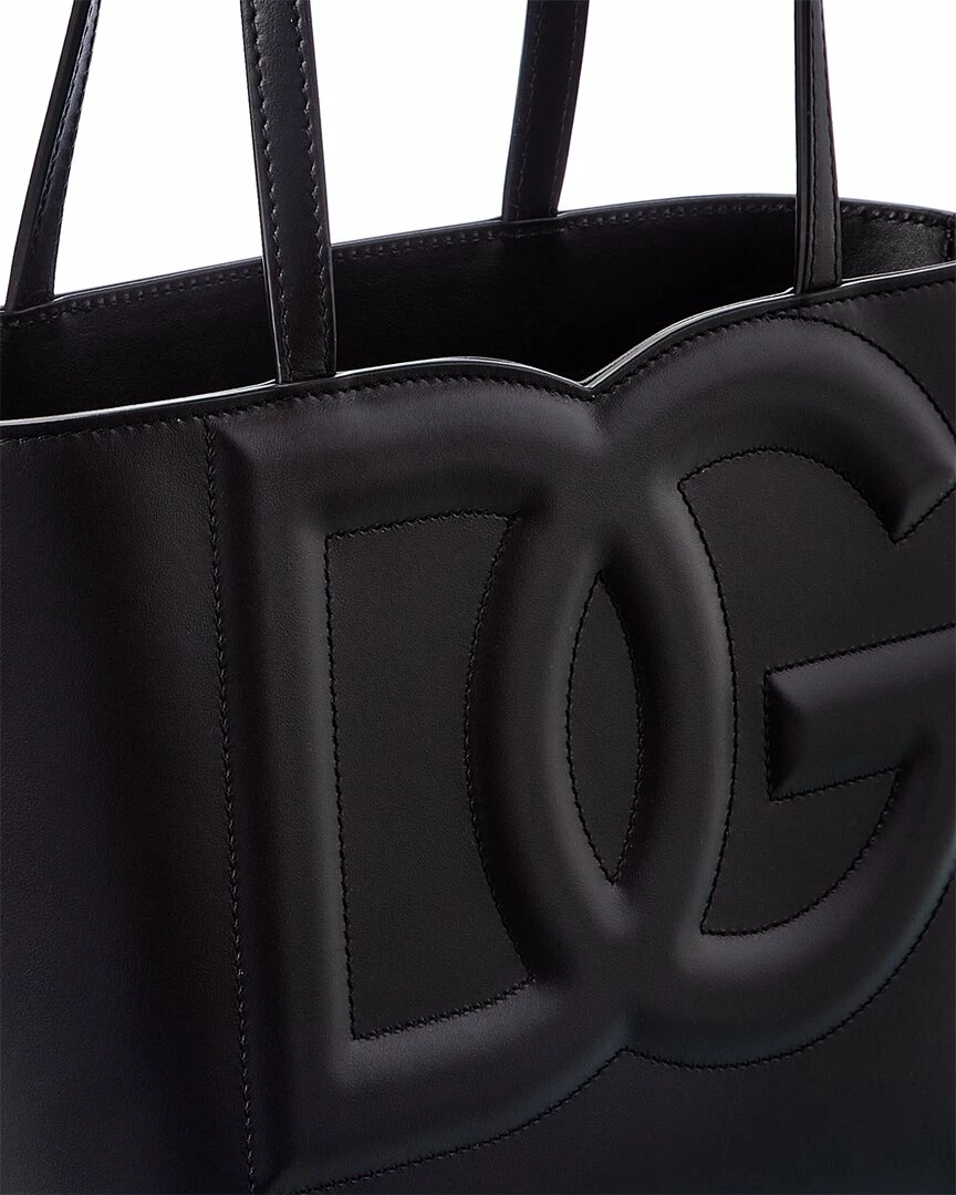 - DG Logo Leather Tote in black leather and gold-tone hardware with stitched logo