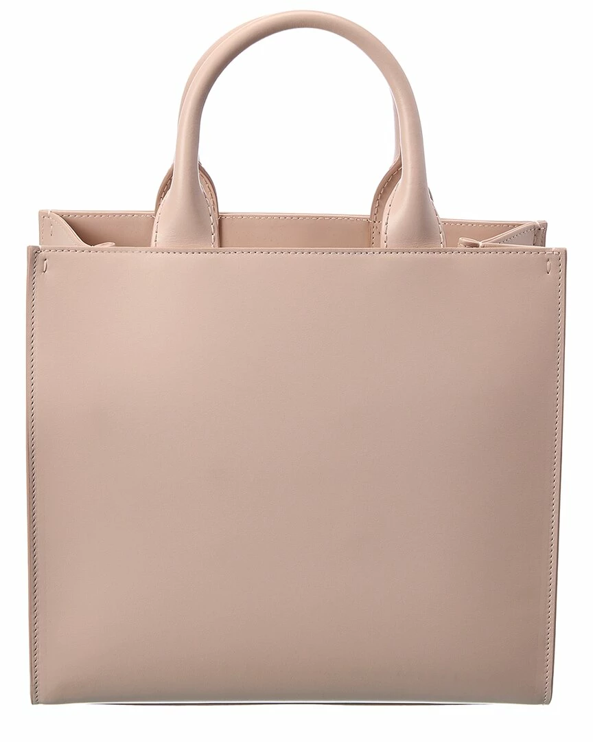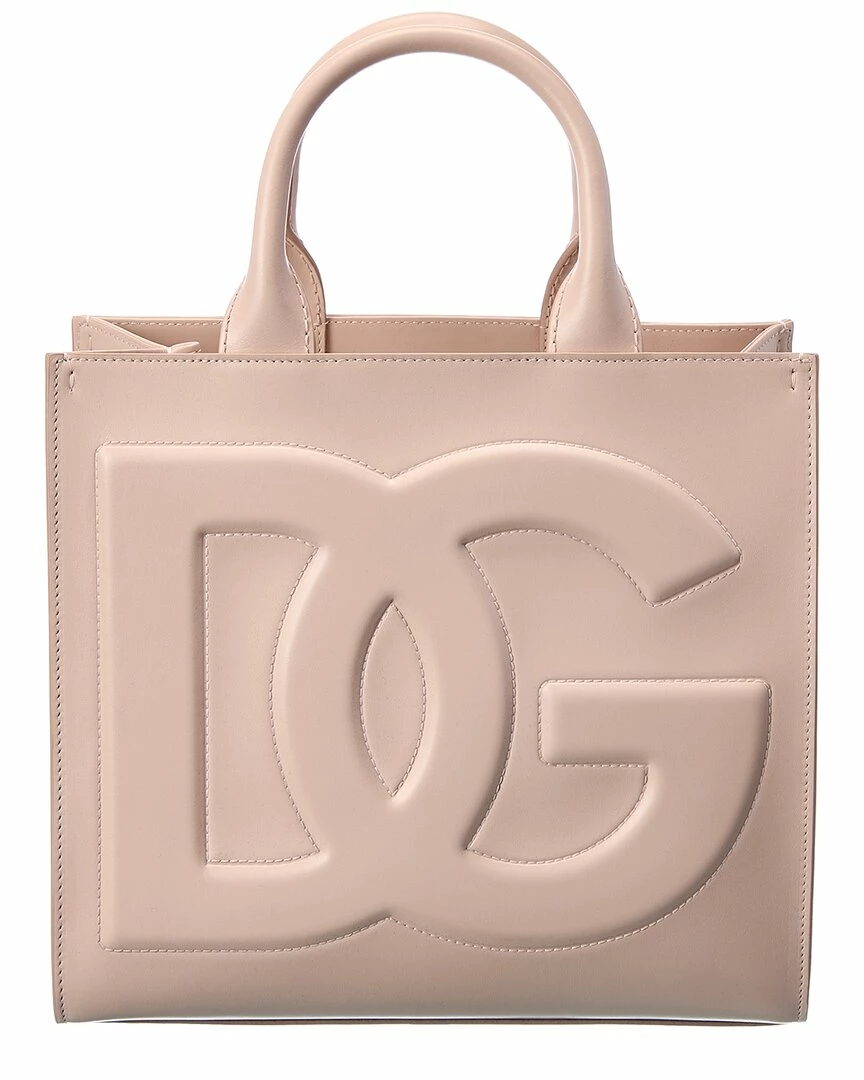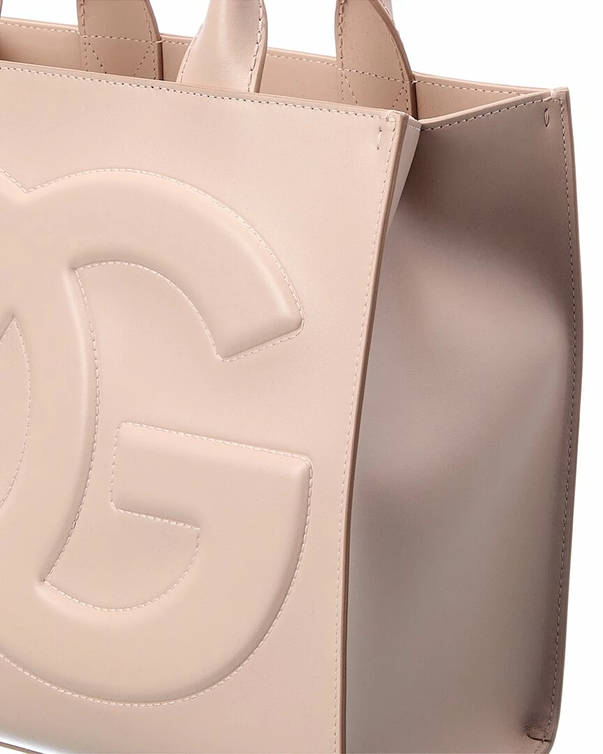 - DG Logo Leather Tote in nude pink leather and gold-tone hardware with stitched logo