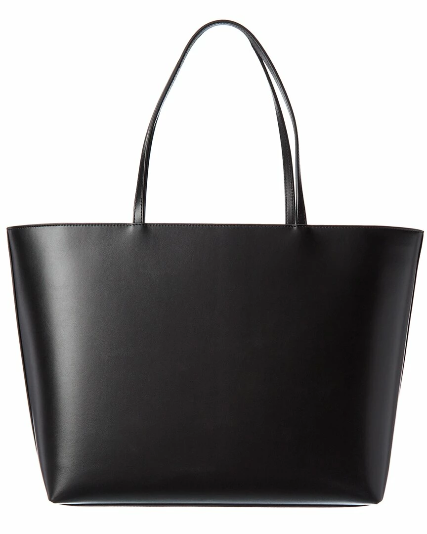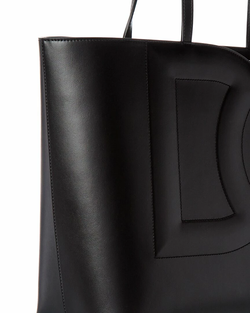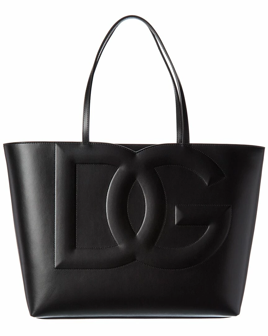 - DG Logo Medium Leather Tote in black leather and gold-tone hardware with stitched logo