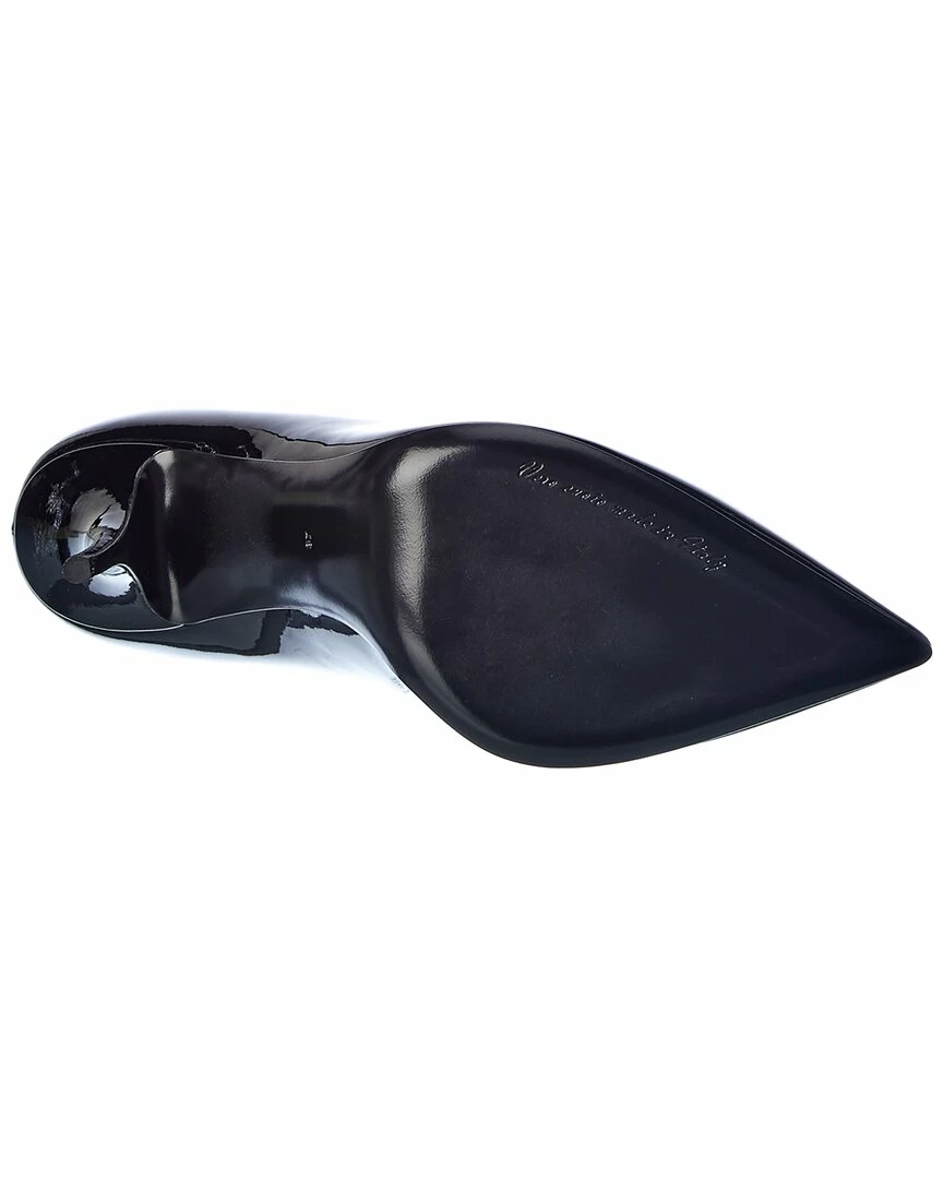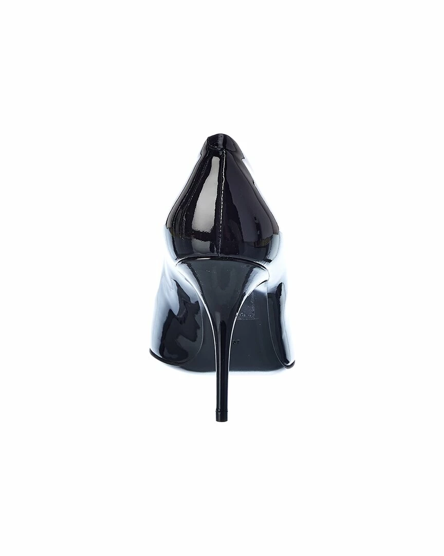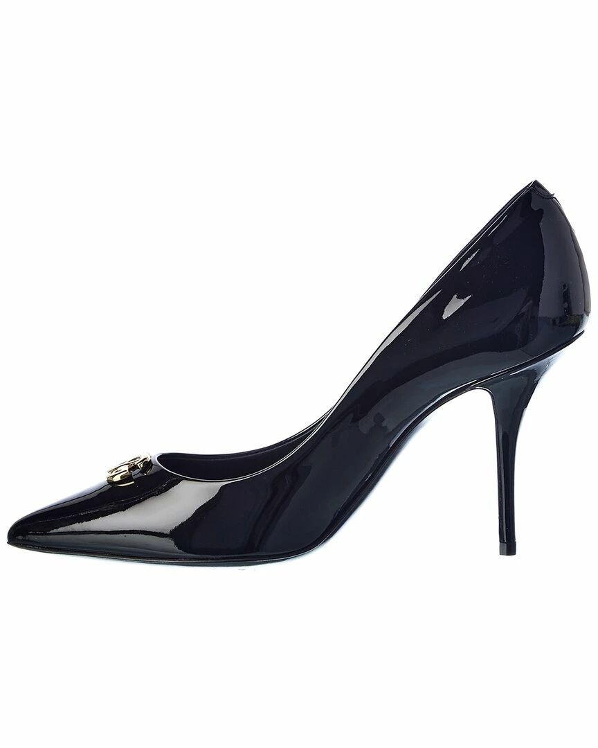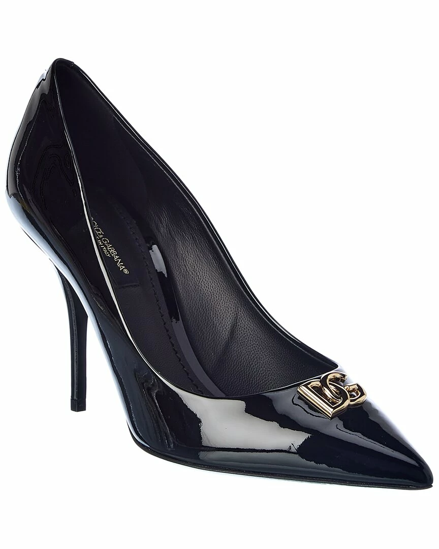 - DG Logo Patent Pump in black patent leather and gold-tone hardware with logo accent