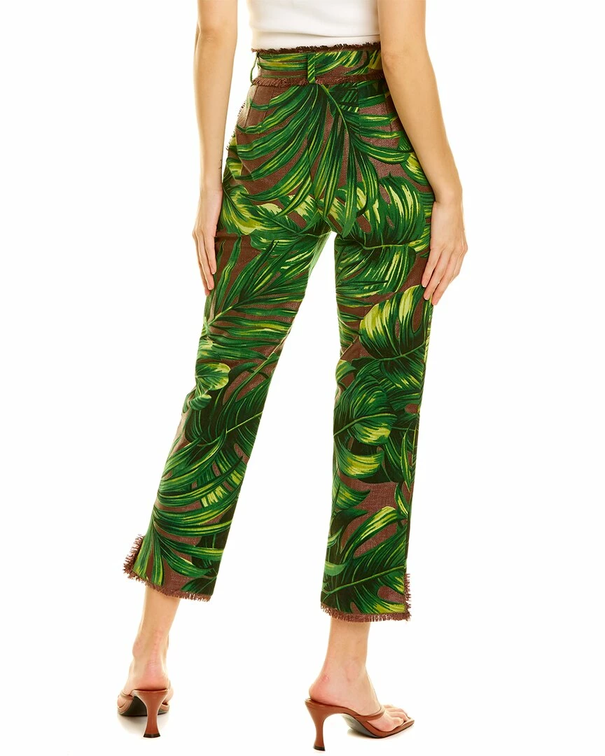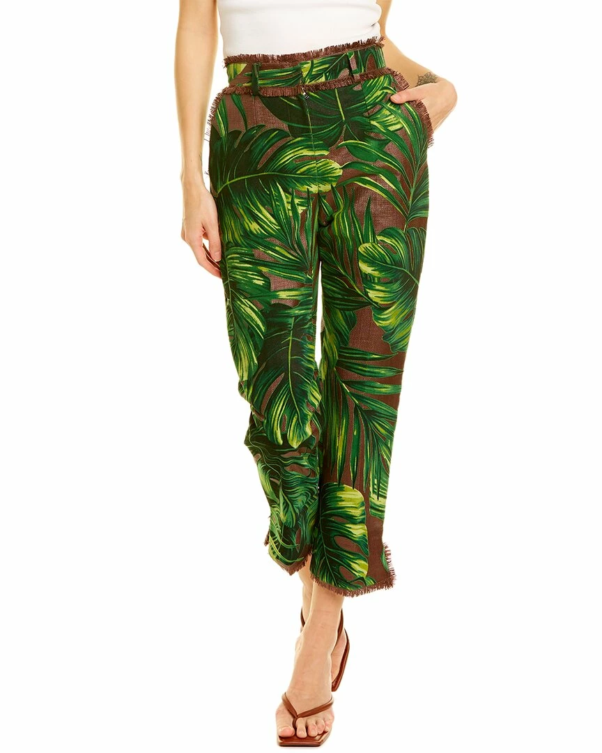 - Jogging Pant in fogile fdo marrone with mixed media design, dual front angled pockets, fringe trim, and belt loops