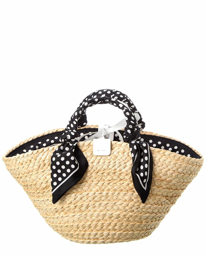 - Kendra Straw & Leather Tote in natural straw and white leather with gold-tone hardware