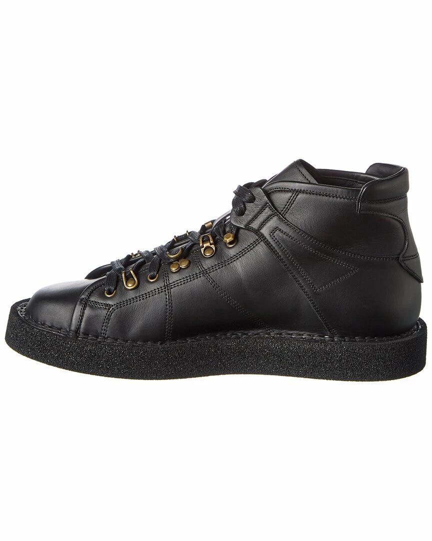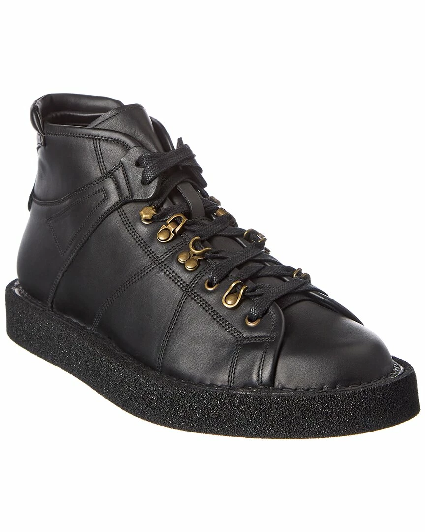 - Leather High-Top Sneaker in black leather and gold-tone hardware with Styrofoam sole