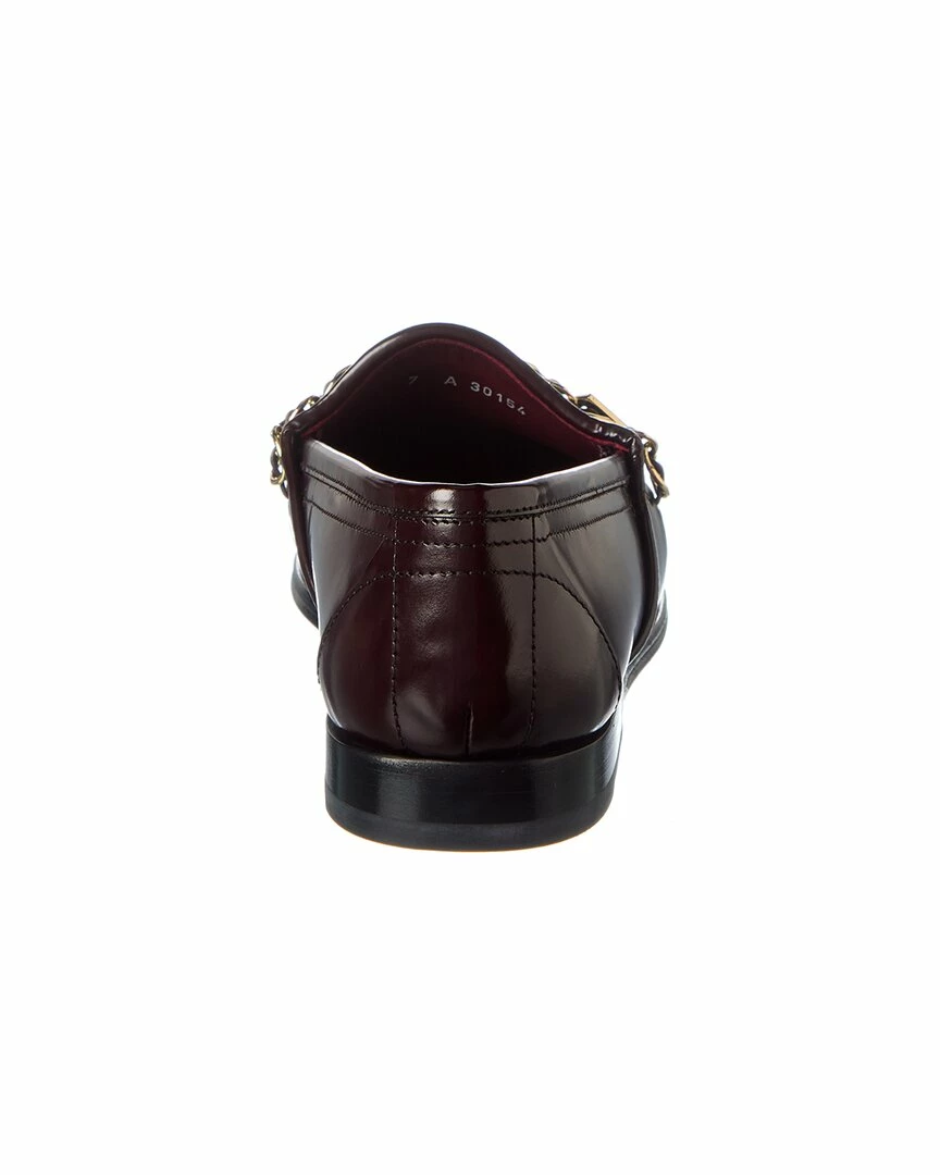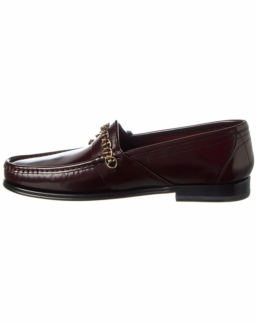 - Leather Loafer in burgundy leather and gold-tone hardware with chain accent with logo charm