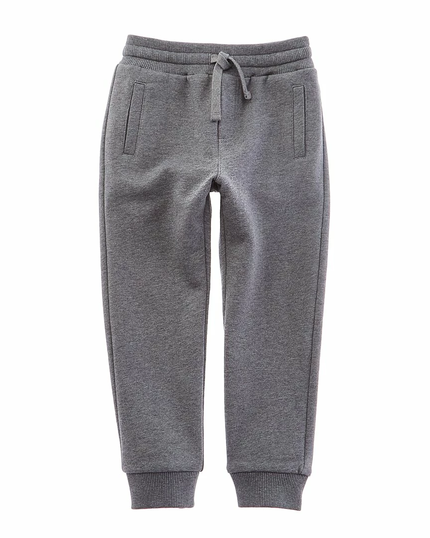 - Pant in grey with elasticized drawstring waist, dual front pockets and back right pocket