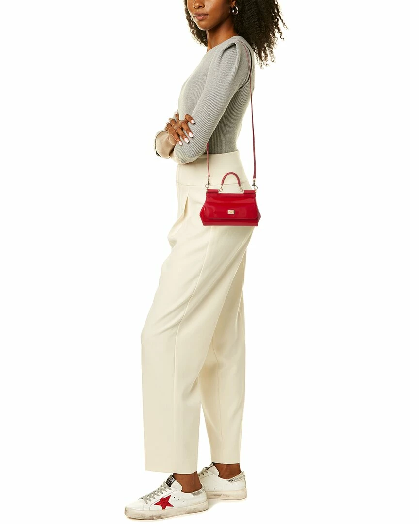 - Sicily Small Patent Satchel in red patent leather with gold-tone hardware